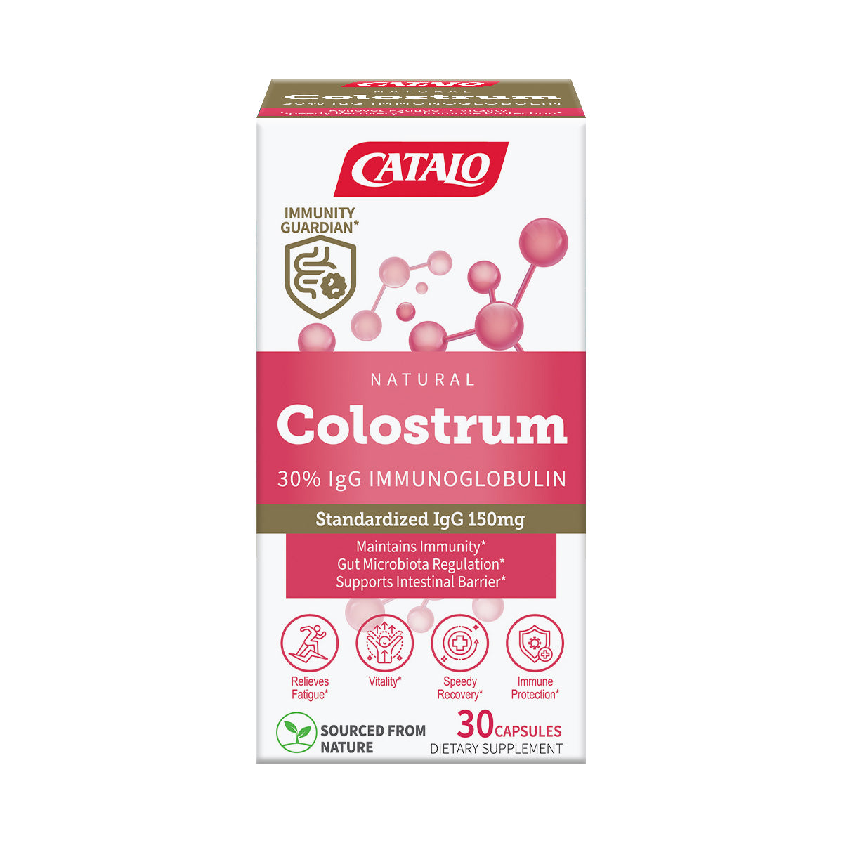 CATALO's Natural Colostrum 30% IgG Formula provides 500mg of colostrum extract per capsule, standardized to contain up to 150mg of IgG. Sourced from healthy USA dairy cows within 24 hours after calving, this formula is processed using low-pressure, low-temperature methods to help preserve its natural bioactive compounds. It includes five key immunoglobulins—IgG, IgA, IgM, IgE, and IgD—and is commonly used to help support immune health and digestive balance*.